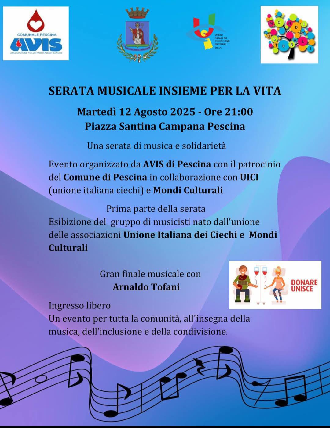 #avispescina #InsiemePerLaVita #musicasolidale #pescina2025 #ArnaldoTofani